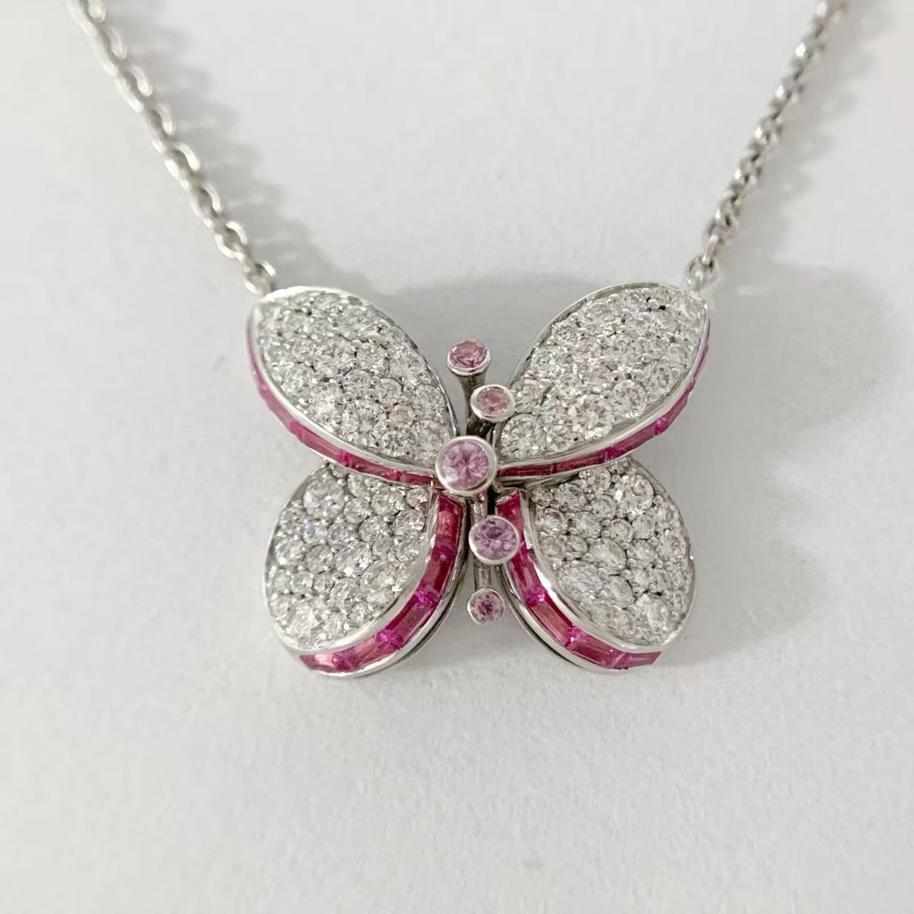 【中古】グラフ GRAFF プリンセス バタフライ ネックレス ダイヤ・ピンクサファイア K18WG