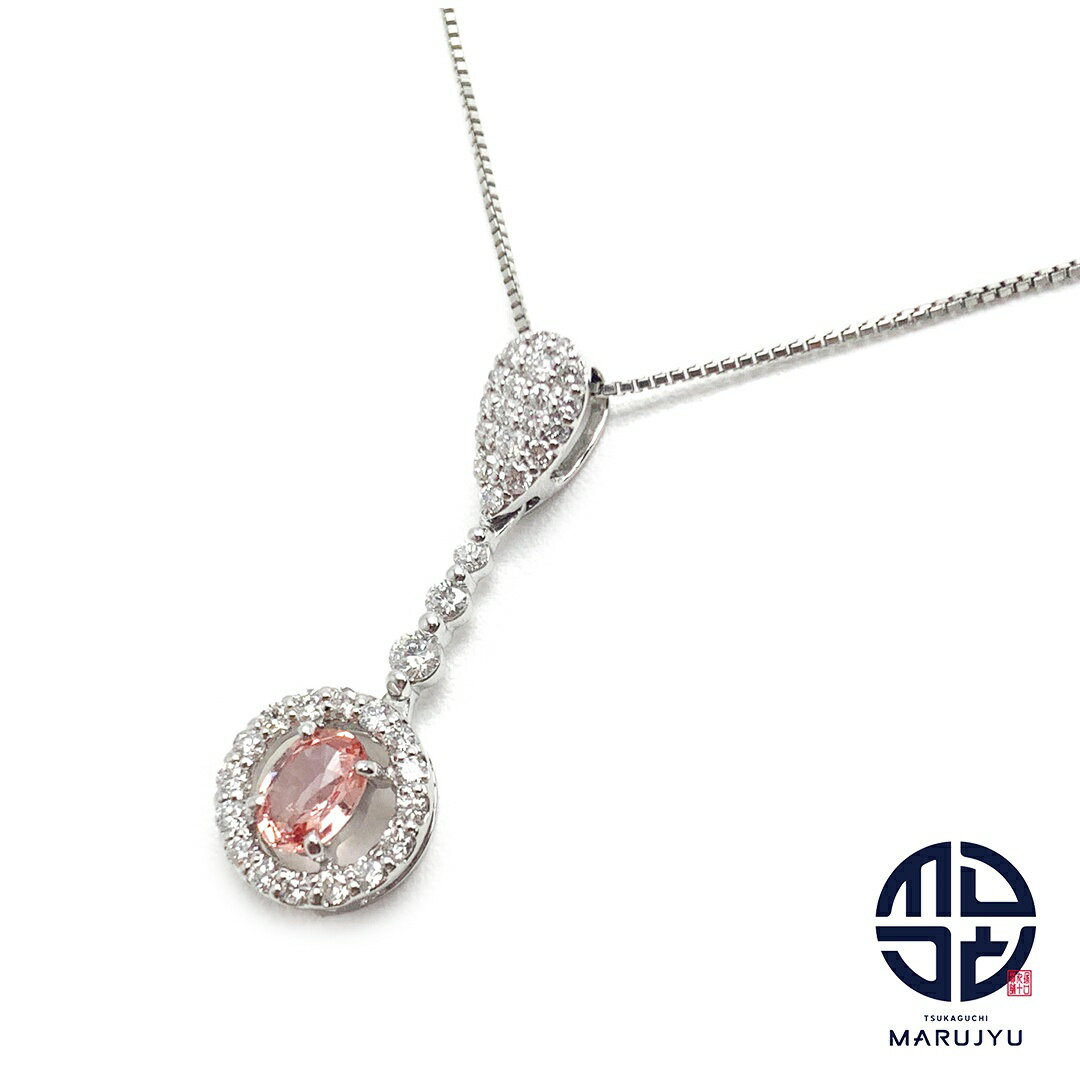 Pt900/850 プラチナ パパラチヤサファイア0.666ct ダイヤ0.50ct ネックレス ジュエリー アクセサリー 鑑別書付き 【中古】