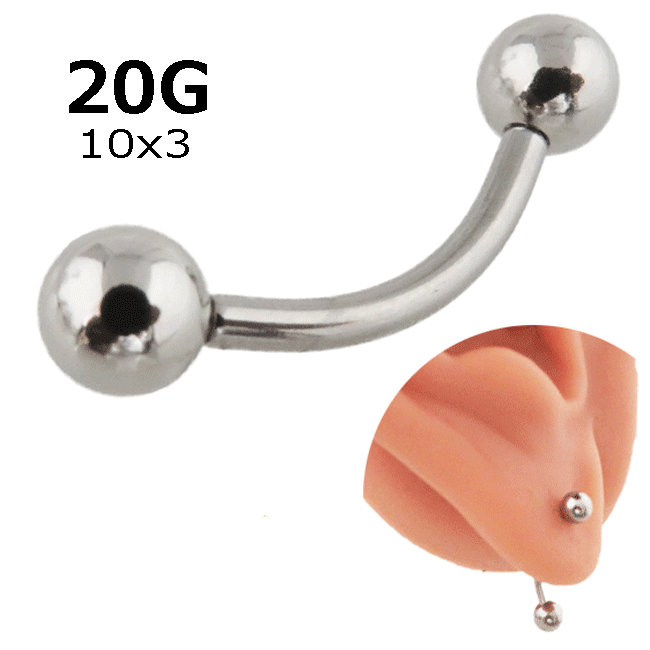 ボディピアス バナナバーベル アイブロー へそピアス 20G 0.8mm サージカルステンレス ボディーピアス イヤーロブ トラガス インナーコンク ナベル ネイプ 内径10mm ボール径3mm