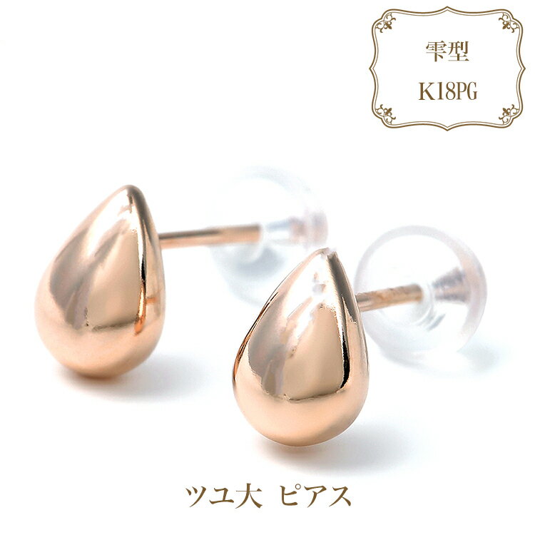 K18 ピンクゴールドの、ぷっくりとした雫型ピアス。