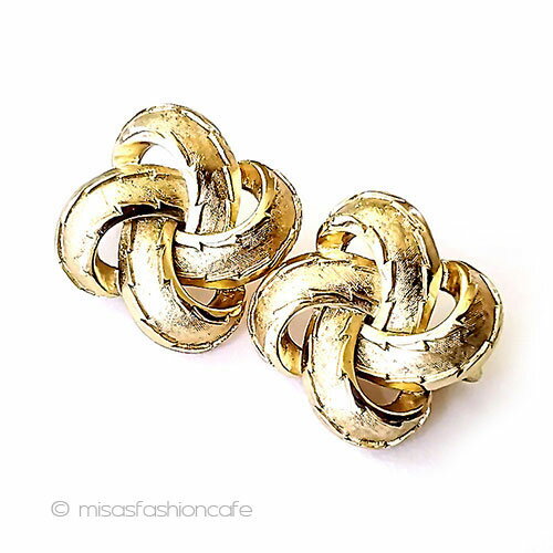 Trifari トリファリ 金リボン イヤリング ヴィンテージジュエリー ビンテージ Vintage・ アンティーク アクセサリー ヴィンテージコスチュームジュエリー 蚤の市 プレゼント ギフト【海外直輸入USED品】