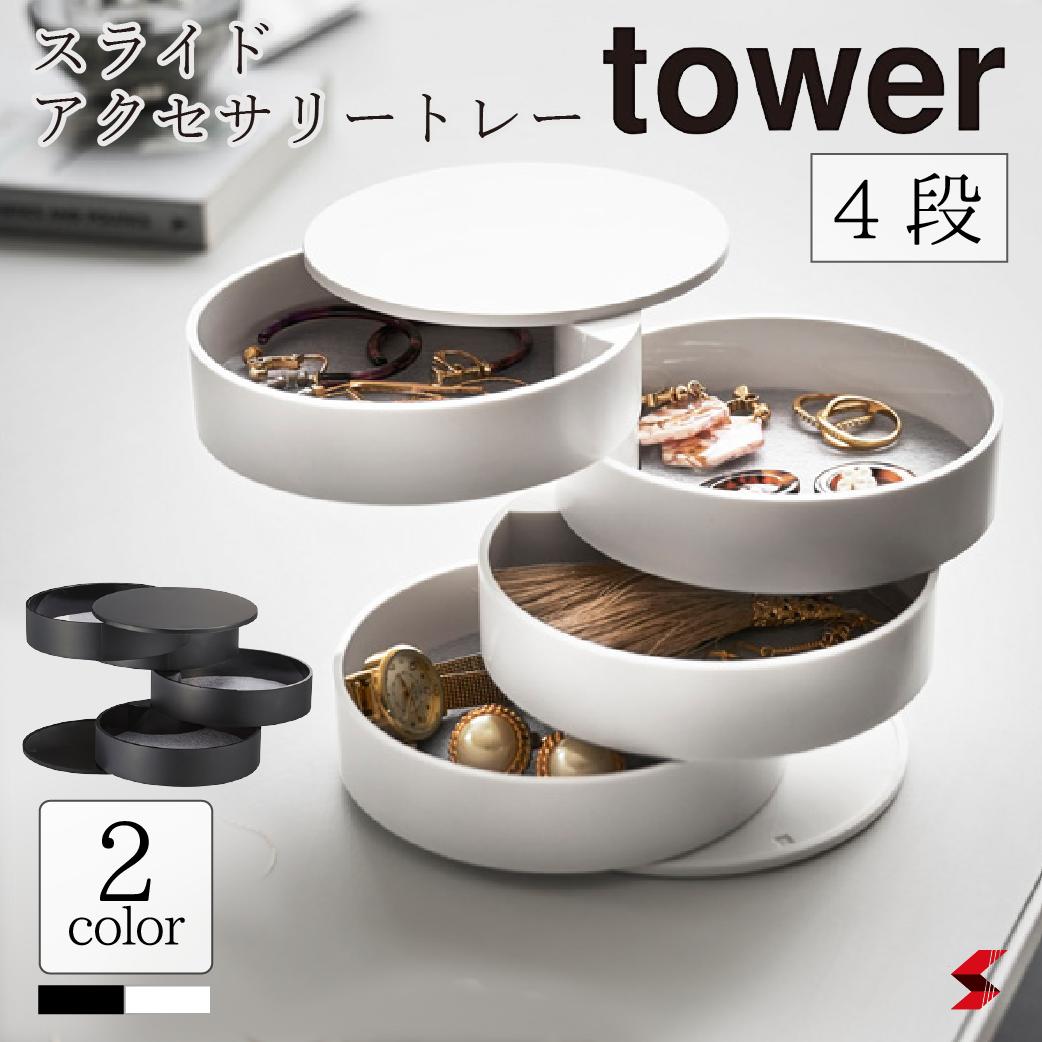 tower タワー アクセサリートレー 4段 ホワイト ブラック 小物入れ 収納 アクセサリー BOX トレー ファッション 可愛い おしゃれ シンプル 山崎実業 【4903208040686】 【4903208040693】