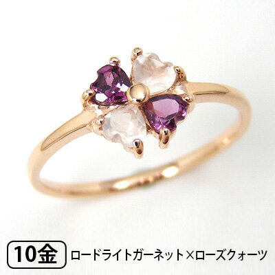 指輪 四つ葉 幸運 幸福 ラッキー 1月 誕生石 天然石 カラーストーン ピンク系 グラデーション 可愛い