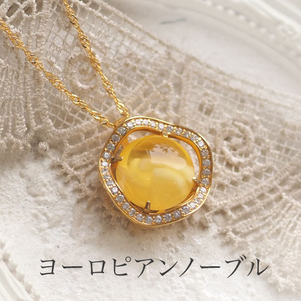 【akubix】プレゼントに。癒しと護身の宝石。艶やかなロイヤルアンバーとスワロフスキーのネックレス
