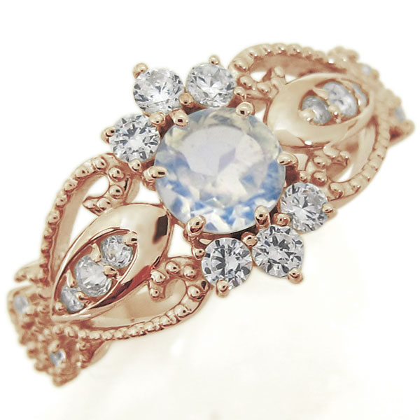 送料無料 アンティーク調 大粒リング ムーンストーン ミル 指輪