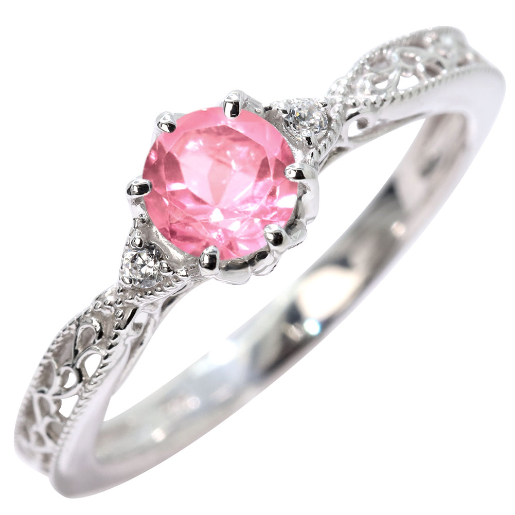 送料無料 シルバー 指輪 ピンクトルマリン アラベスク アンティーク デザイン 10月 クラシカル 高級感 上品 おしゃれ 大人 可愛い プレゼント 記念日