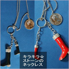 トリプルチェーン・・ブーツ&コインチャームのネックレス!!ラインストーン付のブーツがキューート♪【アジアアクセサリー)