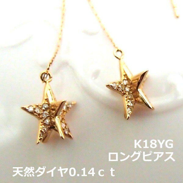 【送料無料】K18YGダイヤ入スターモチーフボリュームロングピアス■HTOP0020
