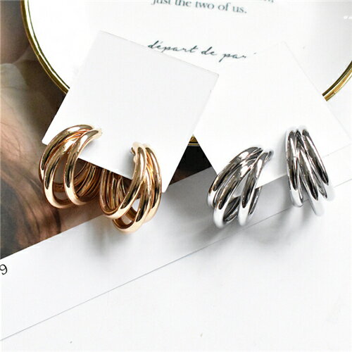 「500円割引レビュークーポン」ピアス ニッチ設計 欧米 C型 三連 サークル ピアス ゴールド シルバー アクセサリー