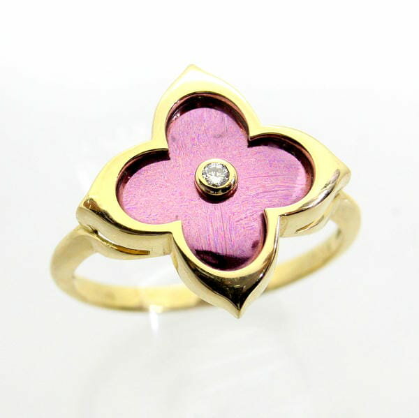 【中古】 18金 パープルゴールド ダイヤ リング 8号