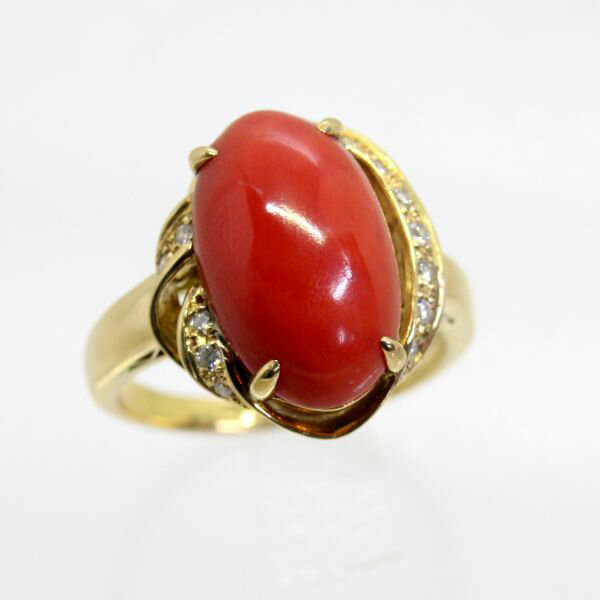 【中古】 18金 赤サンゴ ダイヤ 0.13ct リング 11号