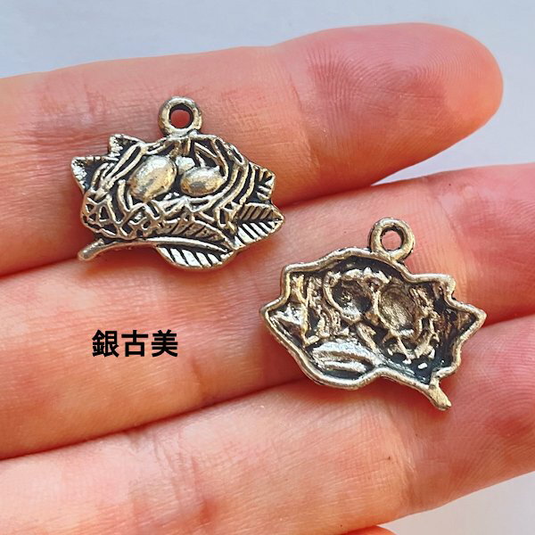 【ハンドメイドパーツ素材】アンティーク風・メタルチャーム・デコ・銀古美・鳥【b4m8p】