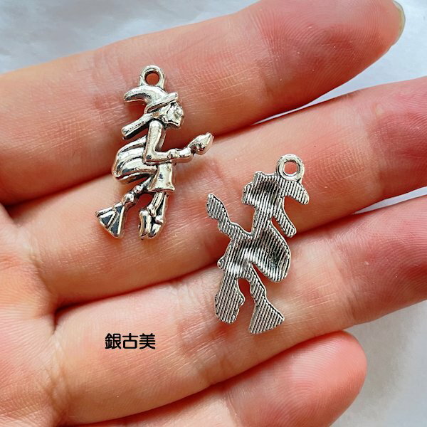 【ハンドメイドパーツ】素材アンティーク風・メタルチャーム・銀古美・魔女【r555】