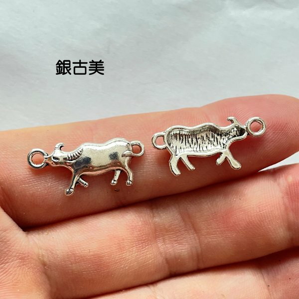 【ハンドメイドパーツ】素材アンティーク風・メタルチャーム・銀古美・牛 【p2095-sa】