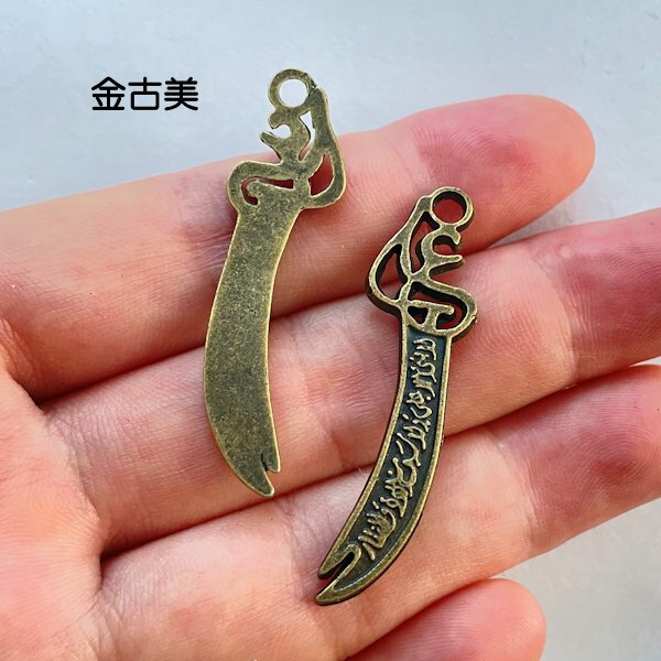 【ハンドメイドパーツ素材】アンティーク風・メタルチャーム・デコ・金古美・剣【c9j7p】