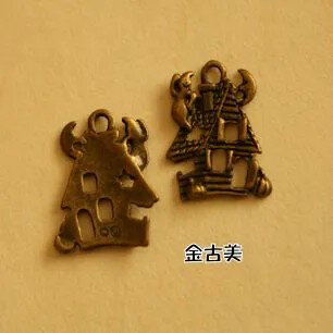 【ハンドメイドパーツ】素材アンティーク風・メタルチャーム・デコ・金古美・ゴーストハウス【v13】
