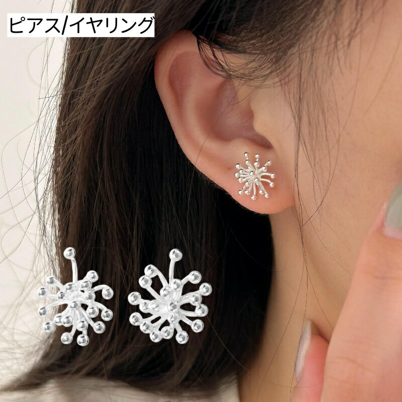 シルバー 立体 花火 ピアス イヤリング ノンホールピアス エレガント小さめ