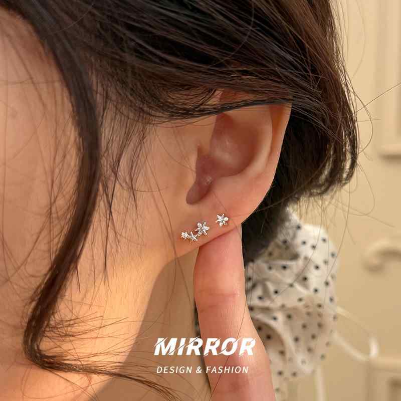 925純銀 左右非対称 花モチーフ 煌めく レディース ピアス イヤリング シンプル エレガント 高級感