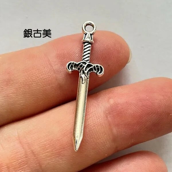 【ハンドメイドパーツ】素材アンティーク風・メタルチャーム・デコ・銀古美・剣【ac2331】