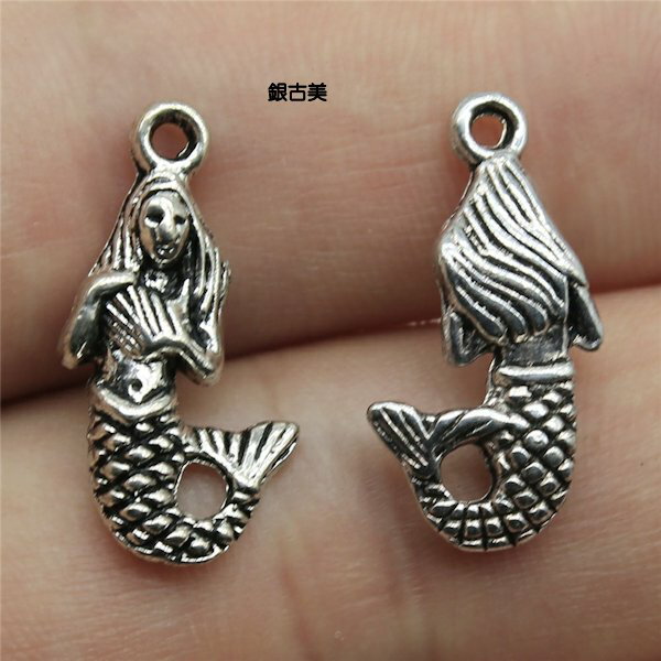 【ハンドメイドパーツ素材】アンティーク風・メタルチャーム・デコ・銀古美・人魚姫【b116-sa】
