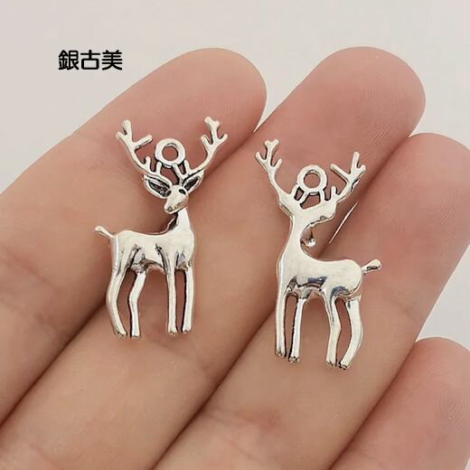 【ハンドメイドパーツ】素材アンティーク風・メタルチャーム・銀古美・鹿【p2347】
