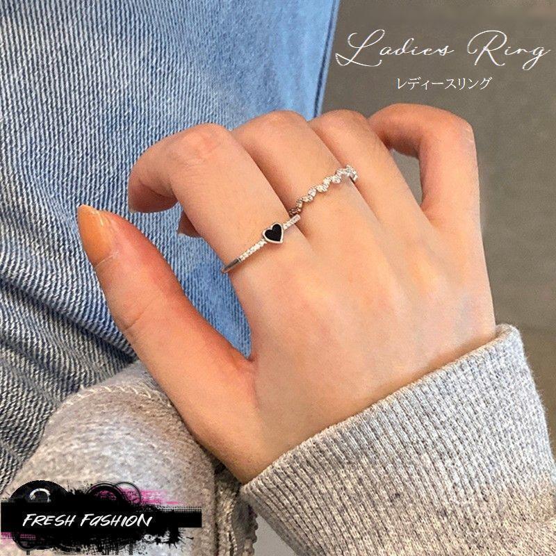 リング 指輪 レディース 女性用 アクセサリー ラインストーン ハート 細め 華奢 かわいい おしゃれ プレゼント ギフト シルバーカラー