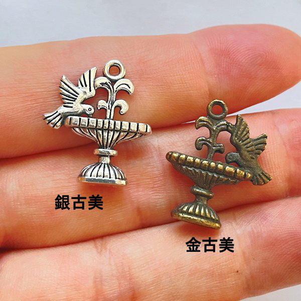 【ハンドメイドパーツ素材】アンティーク風・メタルチャーム・デコ・銀古美・鳥【b4m8p】