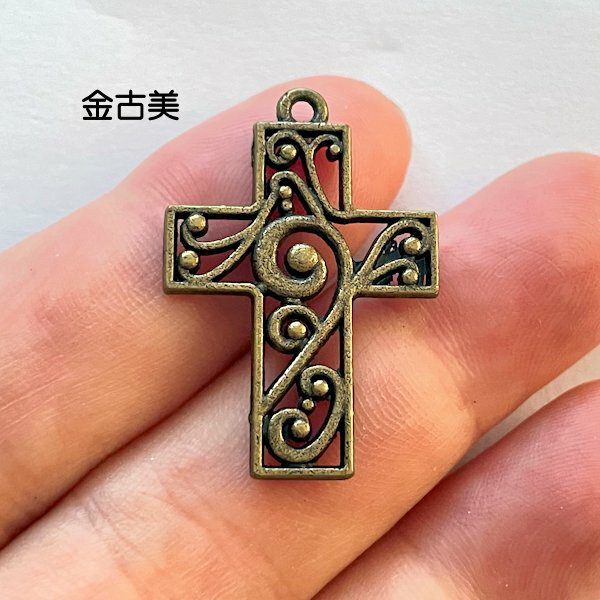 【ハンドメイドパーツ素材】アンティーク風・メタルチャーム・デコ・金古美・十字架【d6b7p】