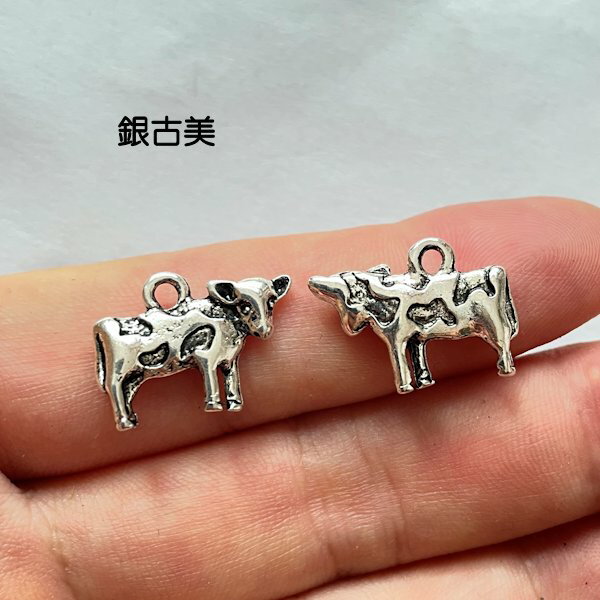 【ハンドメイドパーツ素材】アンティーク風・メタルチャーム・デコ・銀古美・牛【a10g7p】