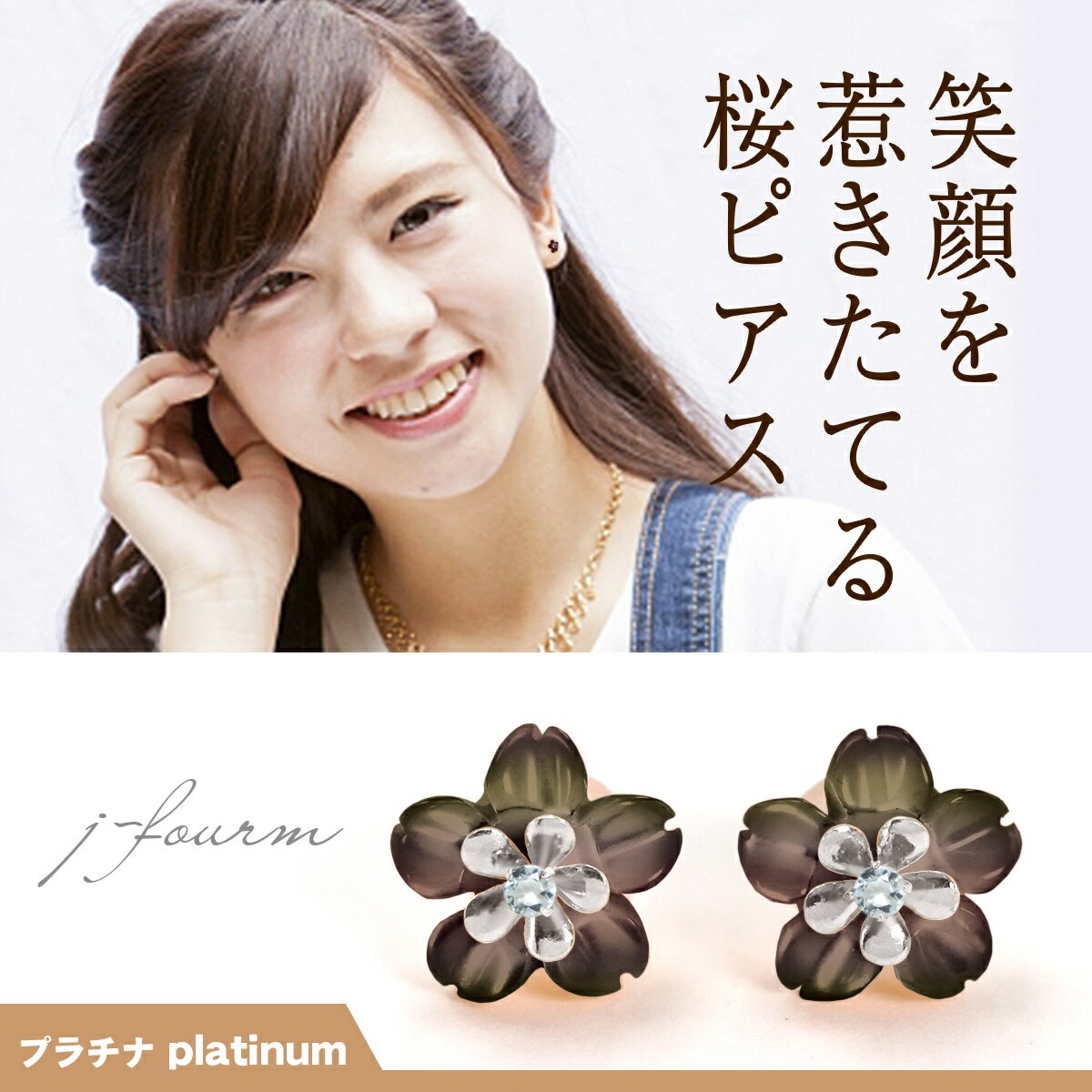 さくら 桜 ピアス アクアマリン プラチナ レディース ブラックシェル 送料無料 白蝶貝 マザーオブパール デザイン 春 ピアス プレゼント 女性 天然石