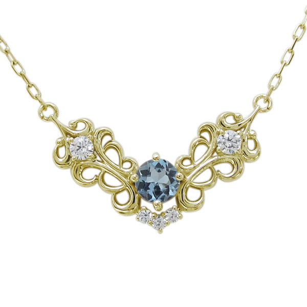 送料無料 アクアマリンネックレス 唐草 10金 ネックレス
