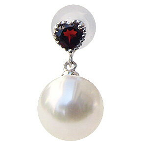 ピアスパール真珠ワイトゴールド片耳用ピアスガーネット