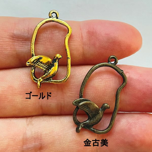 【ハンドメイドパーツ】素材アンティーク風・メタルチャーム・鳥【p2131-gasa】