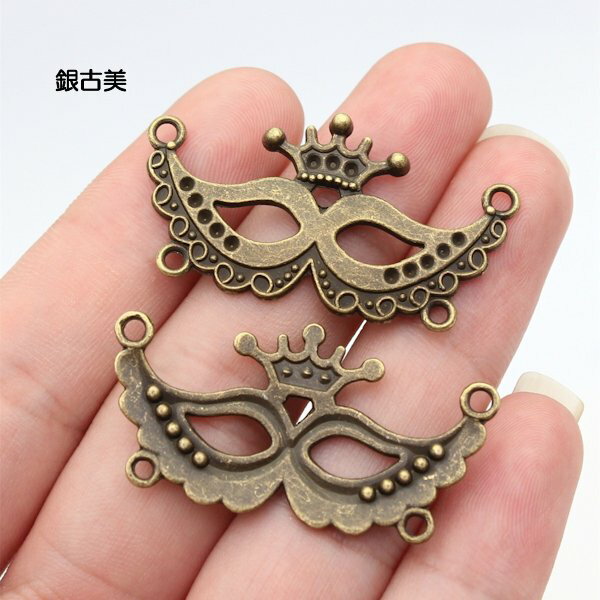 【ハンドメイドパーツ】素材アンティーク風・メタルチャーム・金古美・マスク仮面【a85】