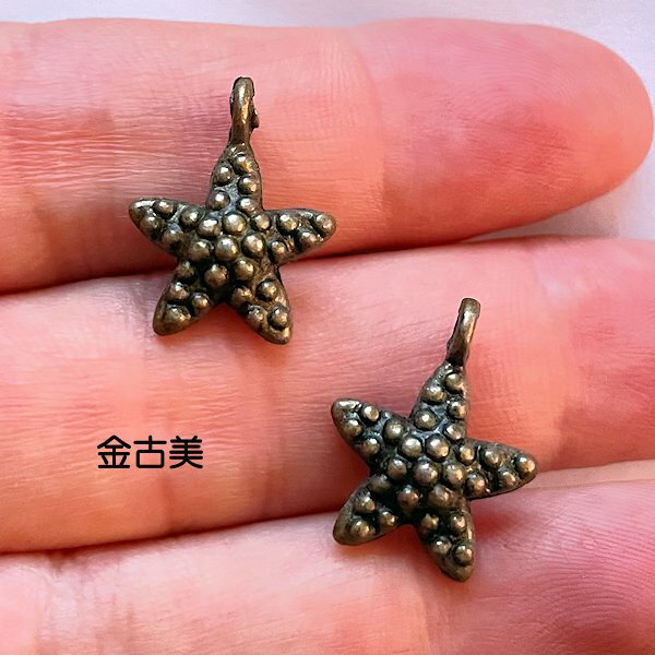 【ハンドメイドパーツ】素材アンティーク風・メタルチャーム・デコ・金古美・星 【x131-ga】