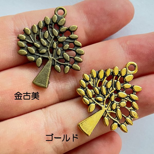 【ハンドメイドパーツ素材】アンティーク風・メタルチャーム・デコ・ツリー木 【c5e7p-c5e8p】
