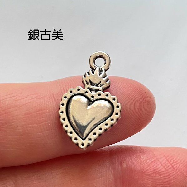 【ハンドメイドパーツ素材】アンティーク風・メタルチャーム・デコ・銀古美・ハート【d7l5p】