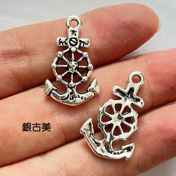 【ハンドメイドパーツ】素材アンティーク風・メタルチャーム・銀古美・錨【y520】
