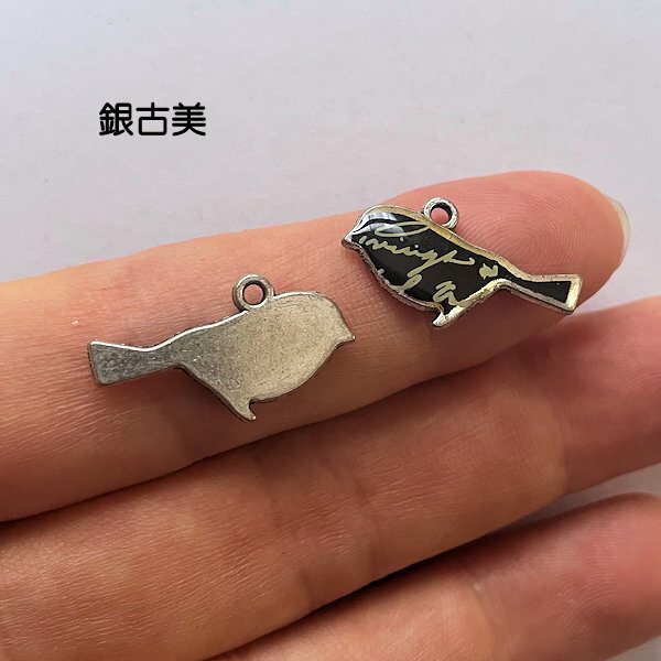 【ハンドメイドパーツ】素材アンティーク風・メタルチャーム・銀古美・鳥【p2063-sa】