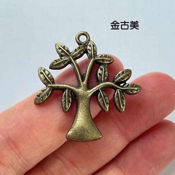 【ハンドメイドパーツ】素材アンティーク風・メタルチャーム・金古美・ツリー&木【c4n3p】