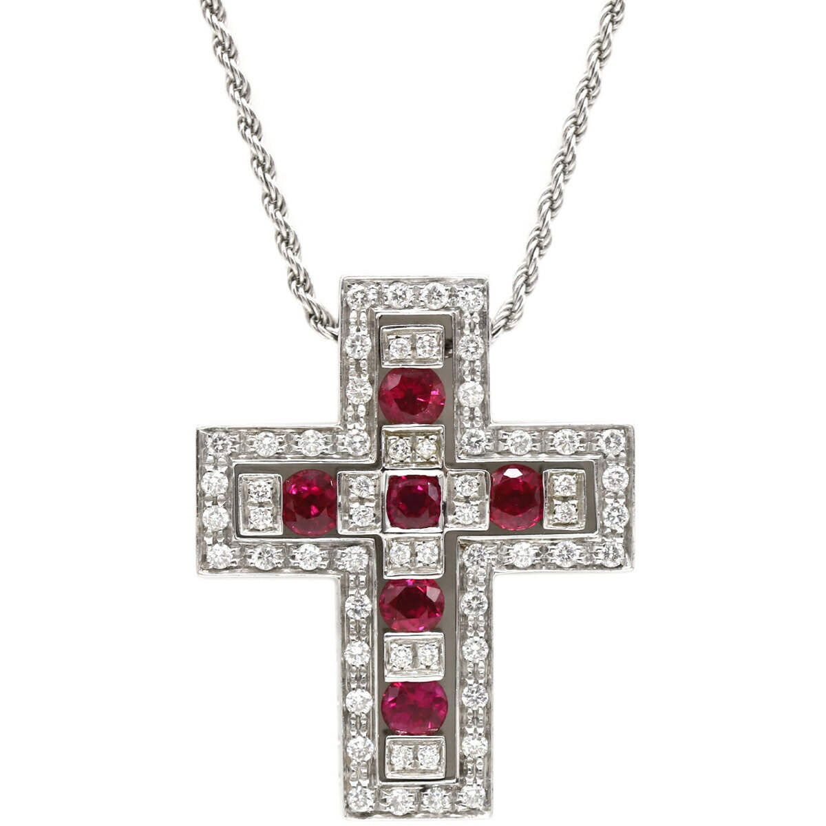 ダミアーニ DAMIANI ベルエポック M ペンダント ネックレス ルビー ダイヤモンド ブランドジュエリー アクセサリー クロス 18K WG 美品 送料無料