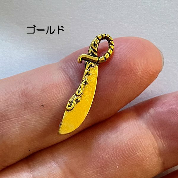 【ハンドメイドパーツ】素材アンティーク風・メタルチャーム・ゴールド・刀【ac2184】