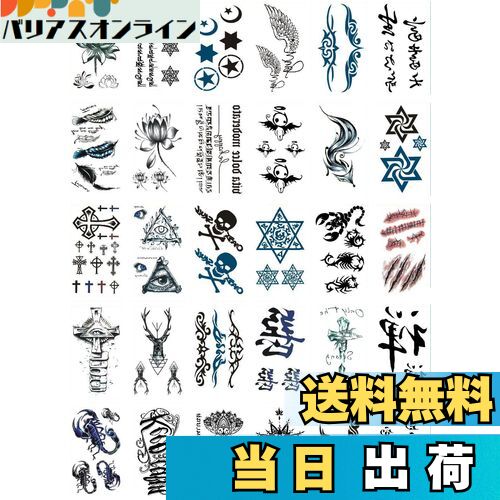 【送料無料】Yesallwas タトゥーシール 蓮 死神 さそり トライバル 黒 30枚セット タトゥー リアル 防水 長持ち 入れ墨シール タトゥーステッカー ボディーシール 子供 メンズ レディース 刺青シール tattoo 腕、足、体、胸、肩、背中に簡単貼る (D30)