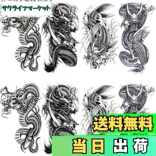 【送料無料】Yesallwas タトゥーシール 龍 ドラゴン 竜 飛竜 DRAGON 8枚セット タトゥーステッカー ボディーシール 刺青シール 防水 TATOO (A)