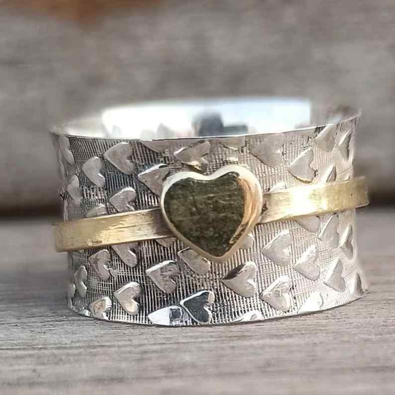 コッパー(銅)とオパールを圧縮して貼り合わせた、複雑な模様が個性的で優しい印象の石 きりっと艶のあるオニキスの組み合わせが個性的 フォークリング プレゼントにおすすめ 女性 素敵