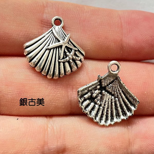 【ハンドメイドパーツ】素材アンティーク風・メタルチャーム・銀古美・貝殻 【p2415】