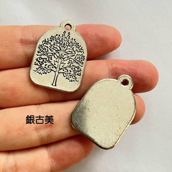 【ハンドメイドパーツ】素材アンティーク風・メタルチャーム・銀古美・ツリーのプレート 【c61】