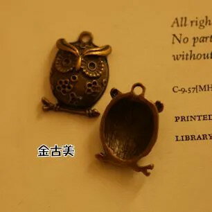 【ハンドメイドパーツ】素材アンティーク風・メタルチャーム・デコ・金古美・フクロウ【aa160】