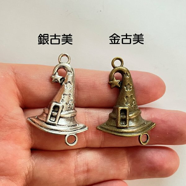 【ハンドメイドパーツ素材】アンティーク風・メタルチャーム・デコ・魔女の帽子【d3f5p-d3f6p】