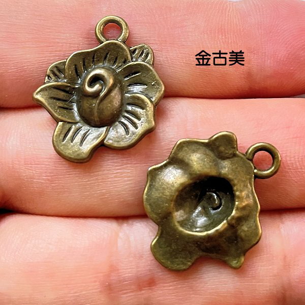 【ハンドメイドパーツ素材】アンティーク風・メタルチャーム・デコ・金古美・花【c6g3p】